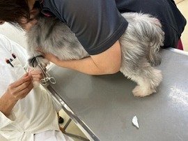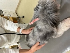 保護犬「ミルク」が日常の中で咳をし始めたため、病院で診察を受けました。