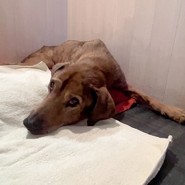 保護された時点で足に障害があり、歩くことが難しい状態です。