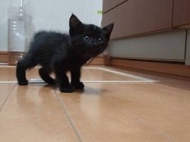 保護する前日には他にも仔猫が2・3匹いたそうですが夜に雨が降ったせいか1匹取り残されてしまいました。雨に濡れこのままでは命が危険と判断し急遽保護。
