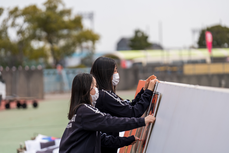 ”スタメンボード”は、ヴィアティン三重のホームゲームで会場内で掲示しているボードです。スタメンの選手を▲の写真のようにご来場の皆様(メインスタンド側)に見えるように設置しております。