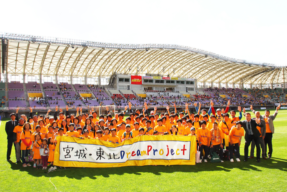 私たちは仙台という地に根付いた市民クラブで、東日本大震災の際は大きな被害を受けました。私たちは現在でも、宮城・東北Dream projectと称して、2011年から1試合も欠かす事無く、宮城・岩手・福島の被災地3県の子どもたちの招待事業を継続して行っており、延べ約10,000人の子どもたちを地元企業を中心に一緒にスタジアムへ招待しています。スタジアムでの笑顔の花を地元へ持ち帰っていただくことによる心のケアを継続して続けています。今回は昨年に引き続き、2回目のクラウドファンディングです。