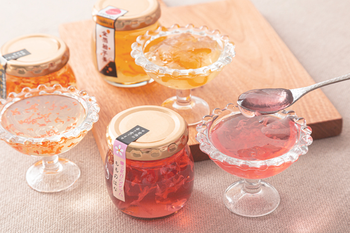 桃の花びらや金木犀、柚子など、地元山梨の自然が育んだ素材を使用し、動物性由来の原材料を一切加えず、自然の味わいをそのままにジャムに閉じ込めます。