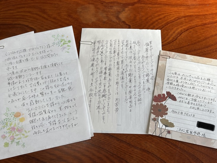 届いたご家庭より沢山の感謝・御礼のメッセージが届きました。