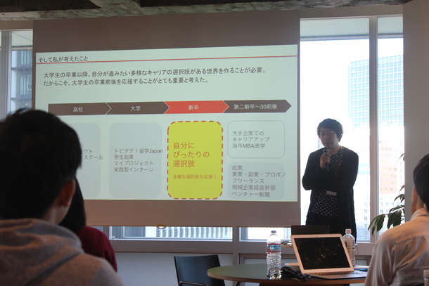 プログラムは、第一部で20代、30代で自らが道を切り開きキャリアを築いている先輩のトークセッション、第二部では自分の未来を描くマイプロジェクトワークショップ、第三部では交流会を実施しました。どのパートも非常に盛り上がりまして、アンケートでも参加した多くの学生より「満足度高」の回答を頂いております。