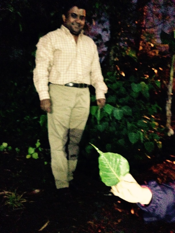 ベチバーは南インド原産、タミール族に伝わるハーブだったので期待も膨らみ一言も洩らしたくないと思いながら、夕方からのうす暗い中をお寺の植物を見ながら神話も混じえ教えて下さるので皆でついて回った。