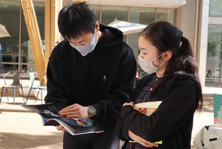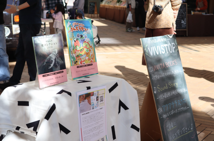 この日、秋祭りを担当していたVIVITA BOOKSの子ども作家メンバーは、ブースを見に来てくれたお客さんに積極的に絵本プロジェクトについてお話していました。