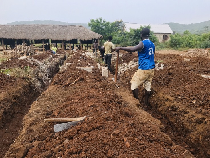 その掘り起こした土をスコップでよいしょと、どかしていく