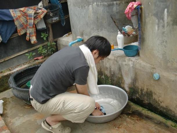 洗濯は井戸水を使って手洗いし、