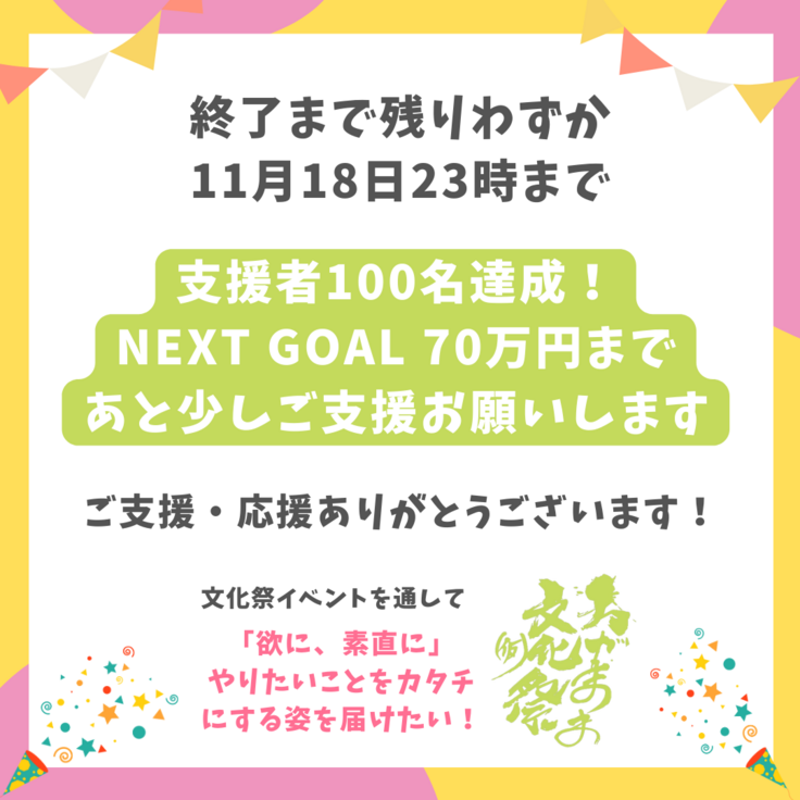 そして、「支援がまだだった!」「さらに追加で支援するよ!」という方は、本日11月18日23時までにご支援よろしくお願いいたします!お待ちしております✨