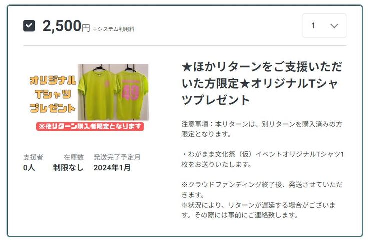 ★ほかリターンをご支援いただいた方限定★オリジナルTシャツプレゼント