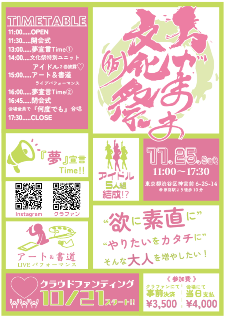 クラファンは終わりましたが、やっとスタートラインです🔥来週11/25わがまま文化祭(仮)を最高にワクワクする場にできるよう精一杯準備してまいります‼️