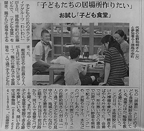 はじめまして、徳島県徳島市で活動しています「地域の中に子どもの居場所を!グループわいわい」(通称「わいわい」)の佐野和明と申します。