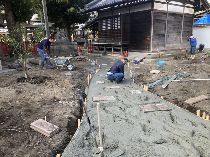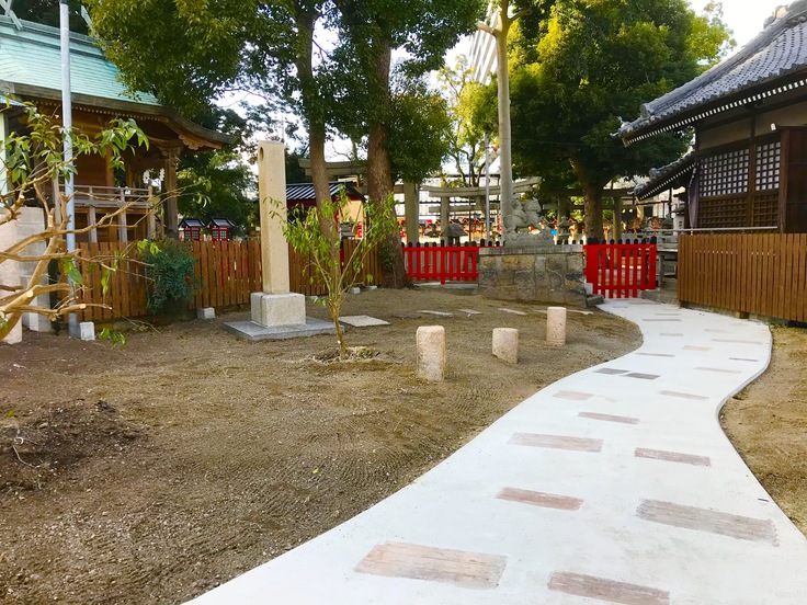 当プロジェクトの舞台である介護デイサービス「ローズ若宮の杜」と「大津神社」の敷地の壁の取り壊し作業に始まり、整地作業、樹木移設、通路整備などを12月末までにかけて当初予定していた工事は概ね完了しました。