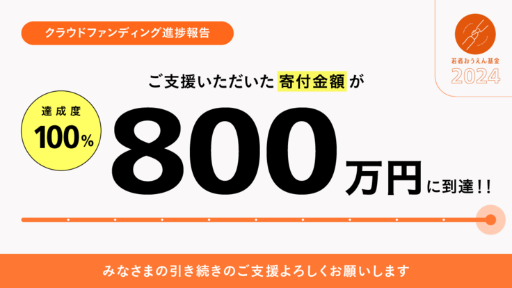 若者おうえん基金助成をしっかり行うためには全体の目標金額である2000万円に到達しないのでこのあとネクストゴールを設定させていただきます。
