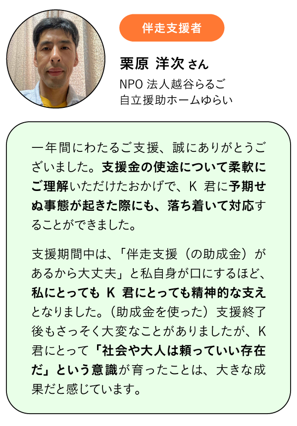 「見ず知らずの大人が、自分のことを支援してくれているんですね」