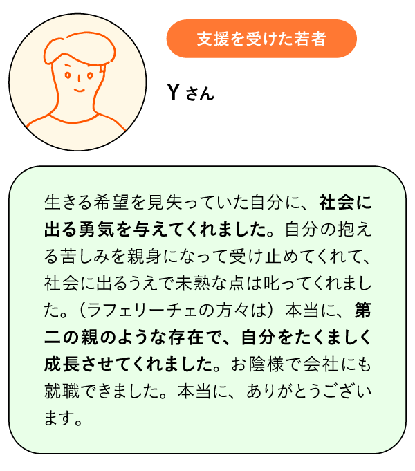 誰にも頼れず苦しむ若者たちに支援を届け、「あなたの将来を応援している人がいる」ことを伝えたい