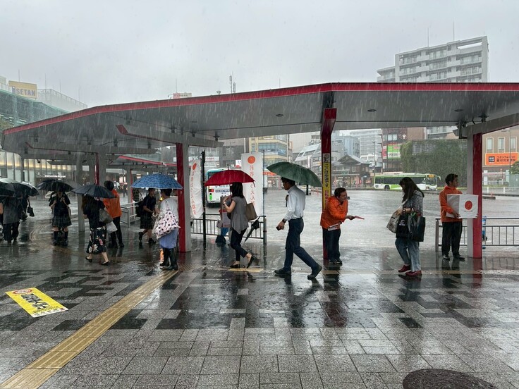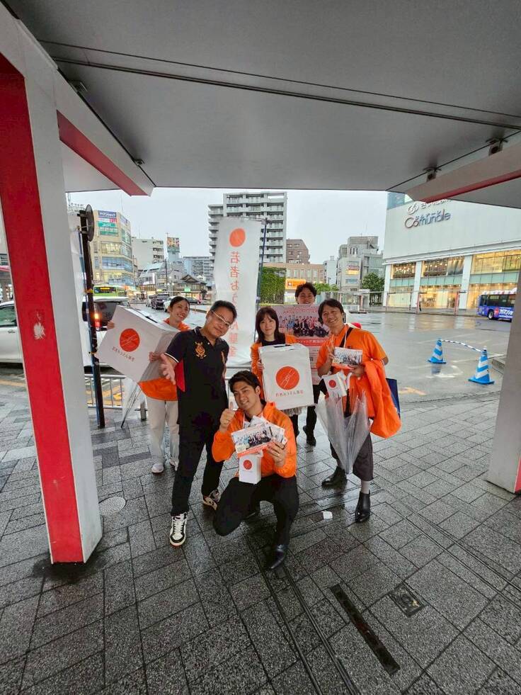 あいにくの天候下でのスタートでしたが、屋根の下で活動させていただき、道行く皆様にはご迷惑をおかけしたかと思いますが、無事活動を行うことができました。