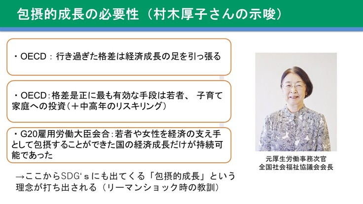 事前に村木厚子さんからOECDのお話を伺い、発表させていただきましたが、首都圏若者サポートネットワークの活動を通じ格差社会の是正につなげていければと改めて思いました。