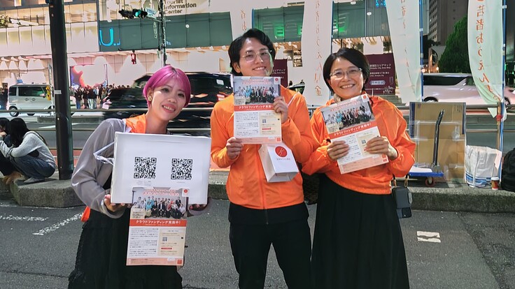 クラファンスタッフは11時半に現場近くに、ボランティアスタッフの皆さんは11時半45分に現場に集合し、12時から街頭募金をスタートしました。