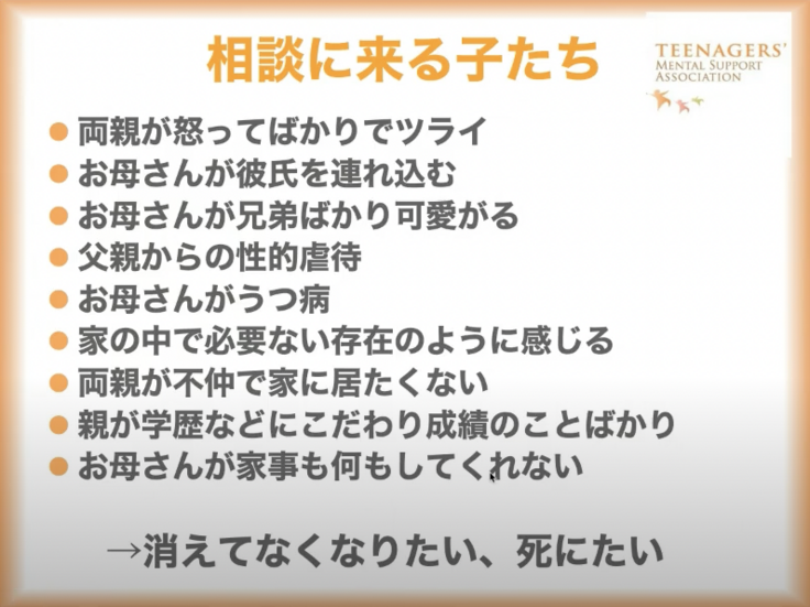 コロナ禍で、両親が家にいて喧嘩ばかりで「自分がいなければいいんだ」という相談も増えました。こうした中で、死にたい、消えたい、消えてなくなりたいと話す子たちが本当に増えています。