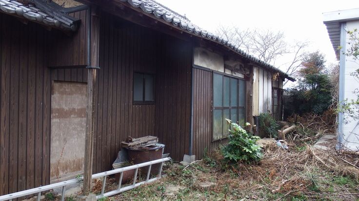 庭・樹木・屋根の補修・西側増築部分・北側増築部分の補修と取り壊し、で、支援金の残額約30万円を使用します。