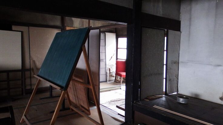 室内です。北側の増設した部屋の傷みがひどいので、この部屋は閉鎖または取り壊したいと考えています。札座は江戸時代に建築され、大正時代にお寺に改装するための増築が行われました。増築部分は資材の質が悪く、将来の大規模補修では取り壊して、江戸時代の建物に戻す予定です。