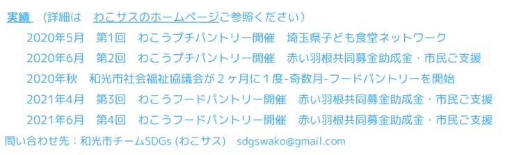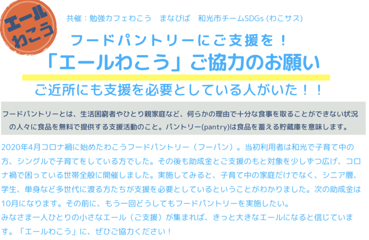 8月上旬に和光市内の施設でフードパントリーを開催します。