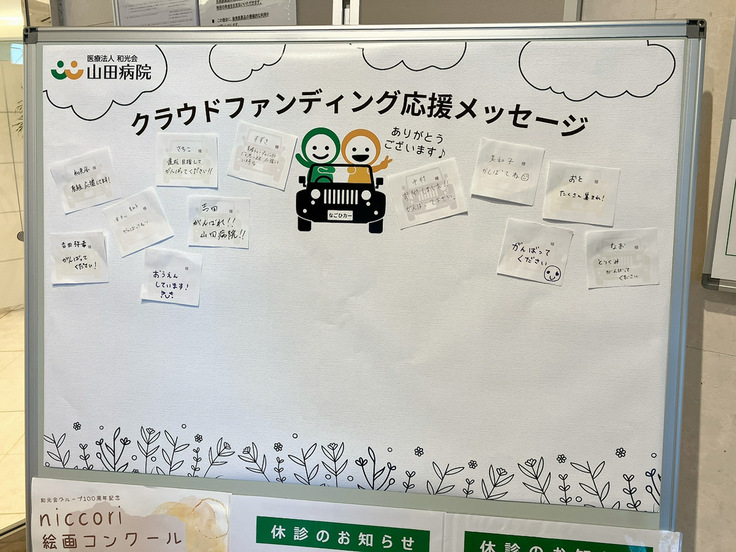 山田病院の入口に、応援メッセージボードを設置しました。