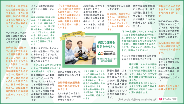 また、クラウドファンディング期間中には、サイト上及び病院ロビーに設置したボードに、本当に多くの応援メッセージを