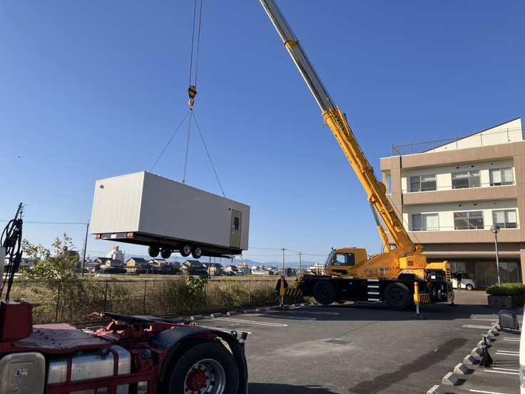 トレーラーハウス型ユニットの搬入が完了しました