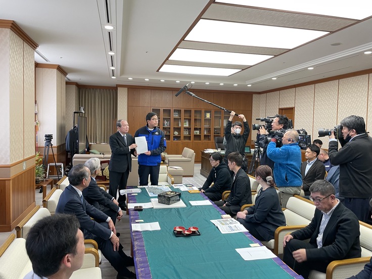3月11日、石川県庁で馳知事に今後の復旧復興の道しるべとなる「和倉温泉創造的復興ビジョン」を提出しました。