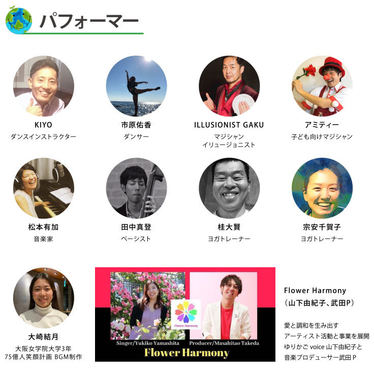 子どもである時期に「未来を想像し、希望を持つ」ということが、互いに分かち合い、思いやり慈しむ心「愛」をはぐくむと信じています。それこそが持続的に世界を平和へと発展させる原動力になり、このようなアクションを世界中で行うことが、クラウンとしての私ができるSDG'sだと考えています。