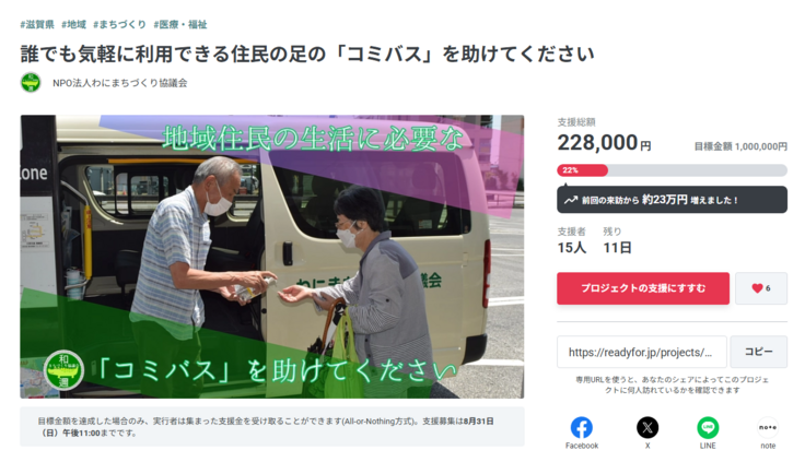 たくさんのご支援ありがとうございます。今回のCFを通して様々な方から支援をいただき感謝しています。私たちのコミバスの活動に共感していただける人がたくさんいらっしゃることが実感でき、そのことが、私たちにとってとても嬉しいことです。残り期間は長くはないですが精一杯活動していきたいと思います。