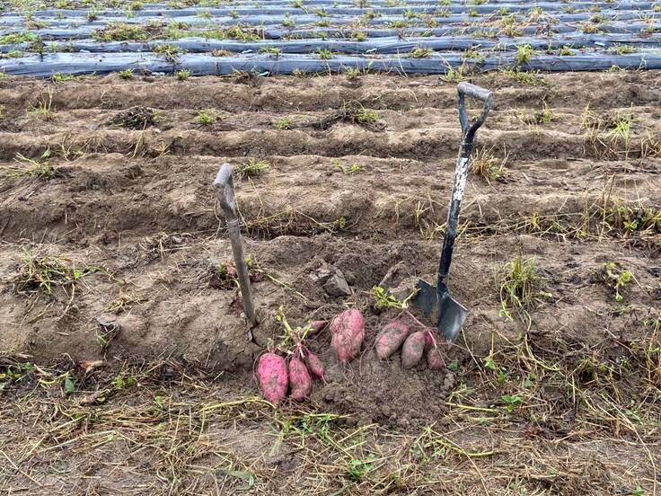 去年まで耕作放棄地だった畑を開拓し、さつま芋を育ててきました。今年の夏はとても暑く出来が心配されましたが、さつま芋は順調に育っていました!
