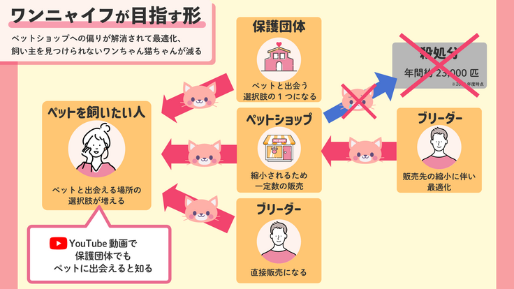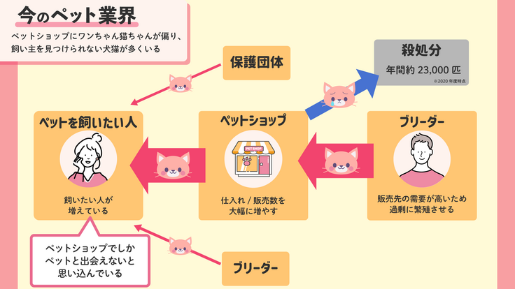 ※上記の図でペットショップ、ブリーダーも経路にあることについて、0にすることが今回の活動目的でないため、記載させていただきますことを改めてご了承ください。