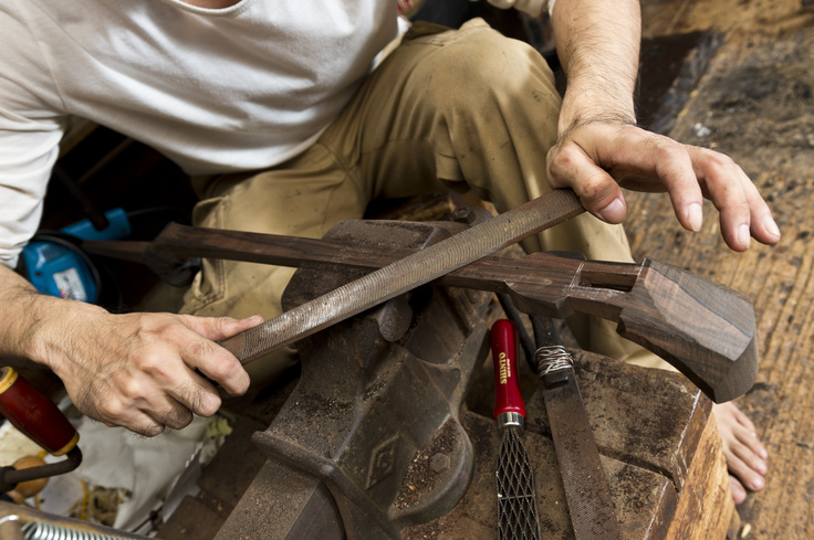 また、かつて三線の棹には国内で栽培していた黒檀という木材を使用していました。材料として扱えるくらいに成長するまで100年以上を必要とする琉球黒檀(くるちとも呼ばれる)は三線の棹として最高級の価値を持っています。しかし、昭和期に三線文化が飛躍的に広がったことで国産の黒檀は枯渇し、現在は使用する黒檀の99%をフィリピンなどの海外産に頼っています。この海外材も枯渇してきているのが現状です。
