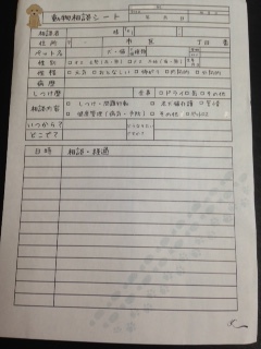 犬猫相談シートを記入郵送頂き