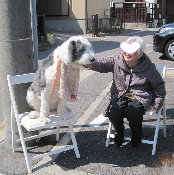 最近は天気がいい為、春らしい陽のなかのお散歩が介在時にできてとても嬉しいです^m^写真は、長距離の散歩が難しい方は道にイスを用意してみんなを見守って頂く役目です~!!