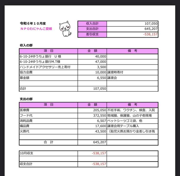 シェルター家賃、水道光熱費、ガソリン代、印刷代、切手代など、通信費並びに雑費、などは、自腹です、譲渡会用病院ハイエーススーはロングは私用ではつかいません、保険はかけています。