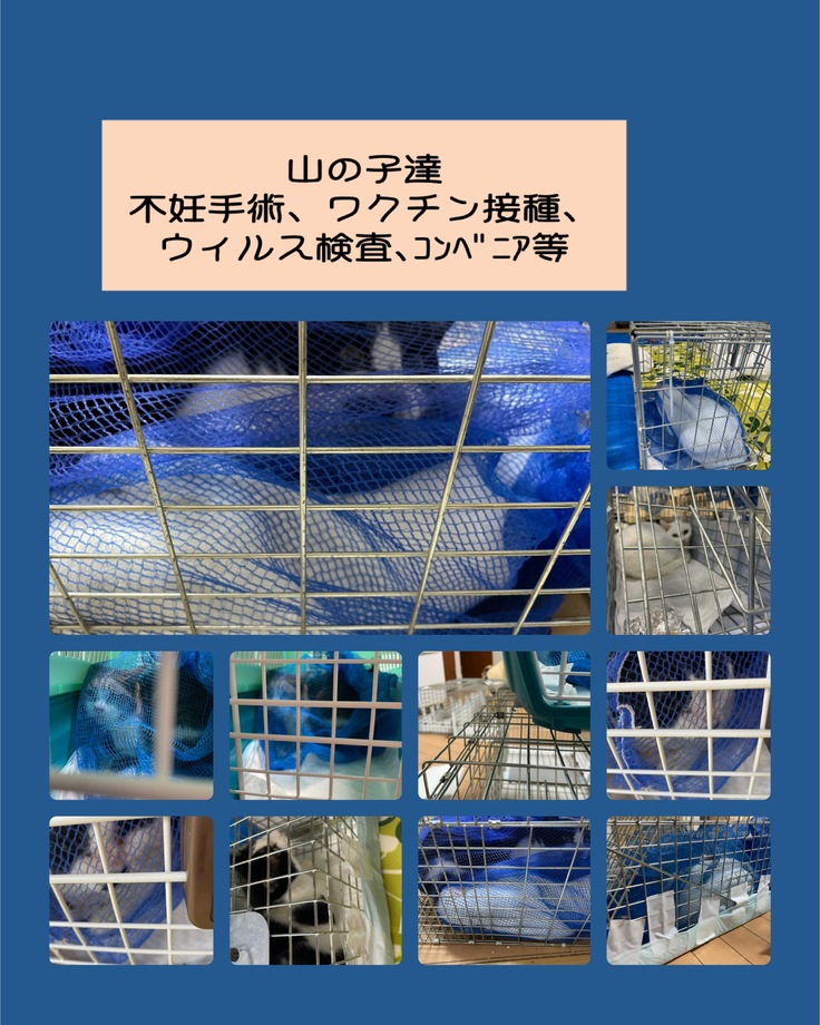 山の子達を一斉不妊手術、ワクチン接種、ウィルス検査、コンベニアなど。