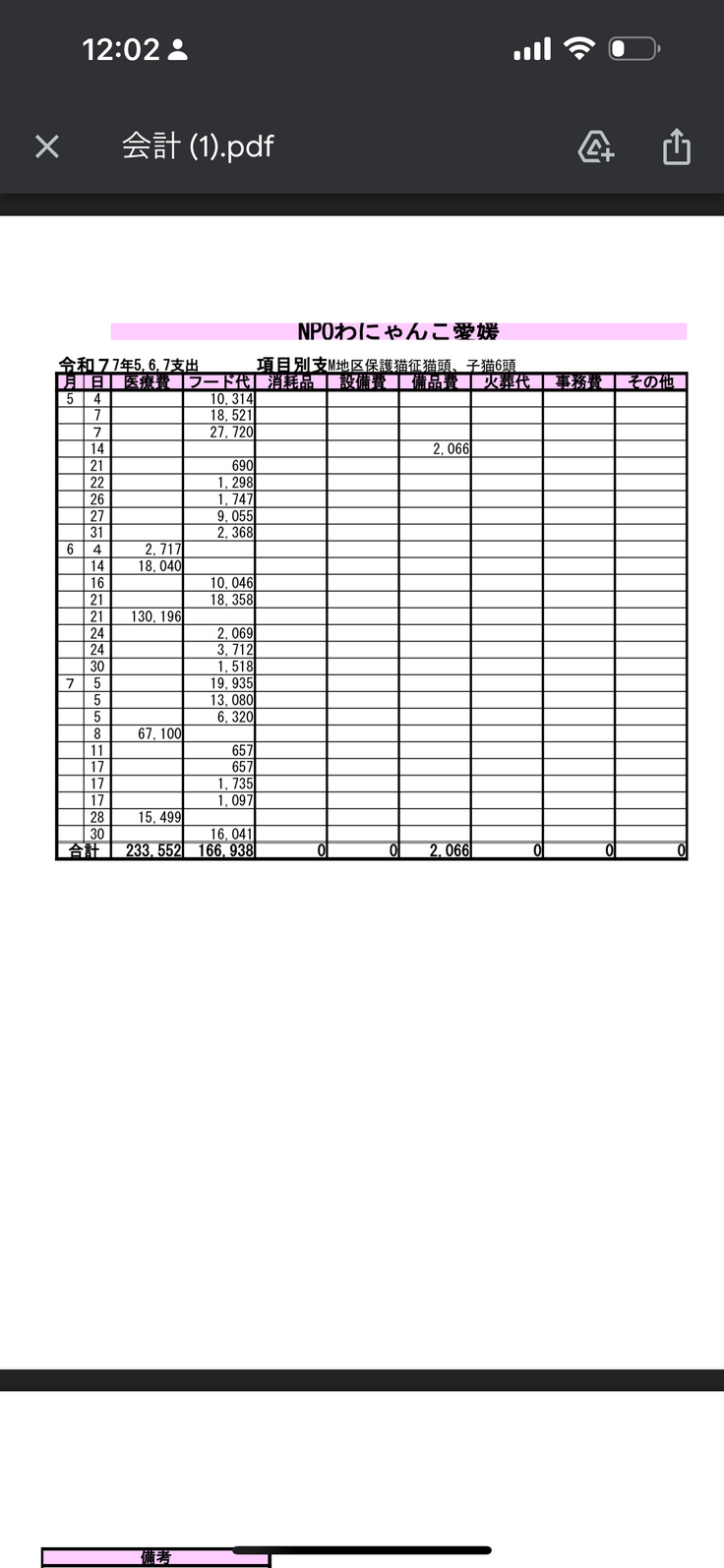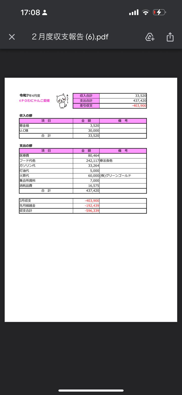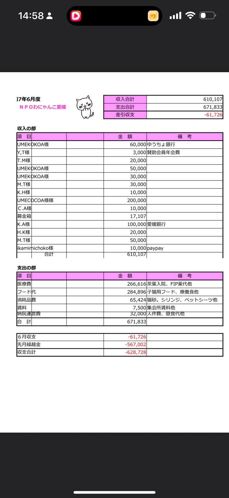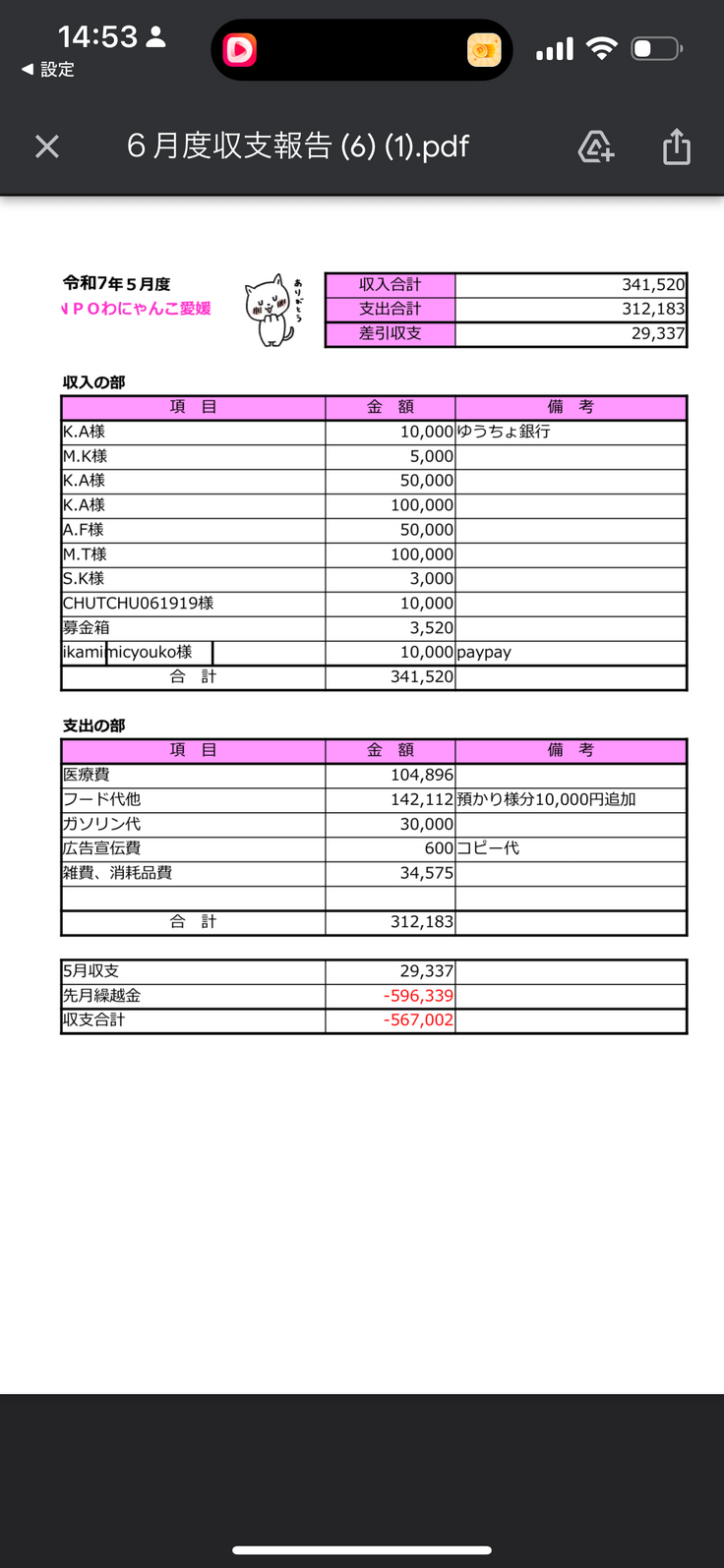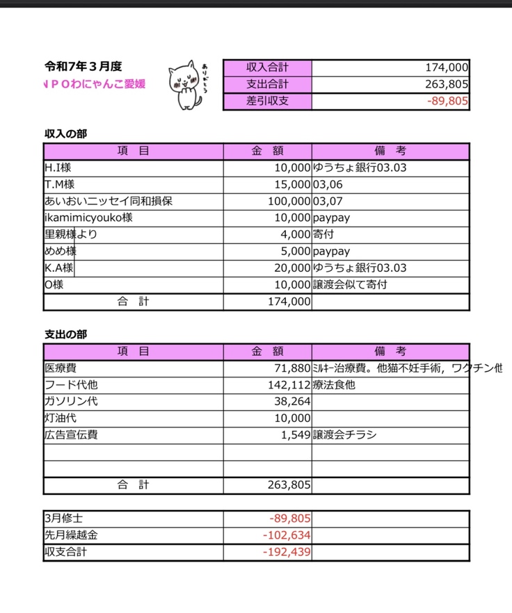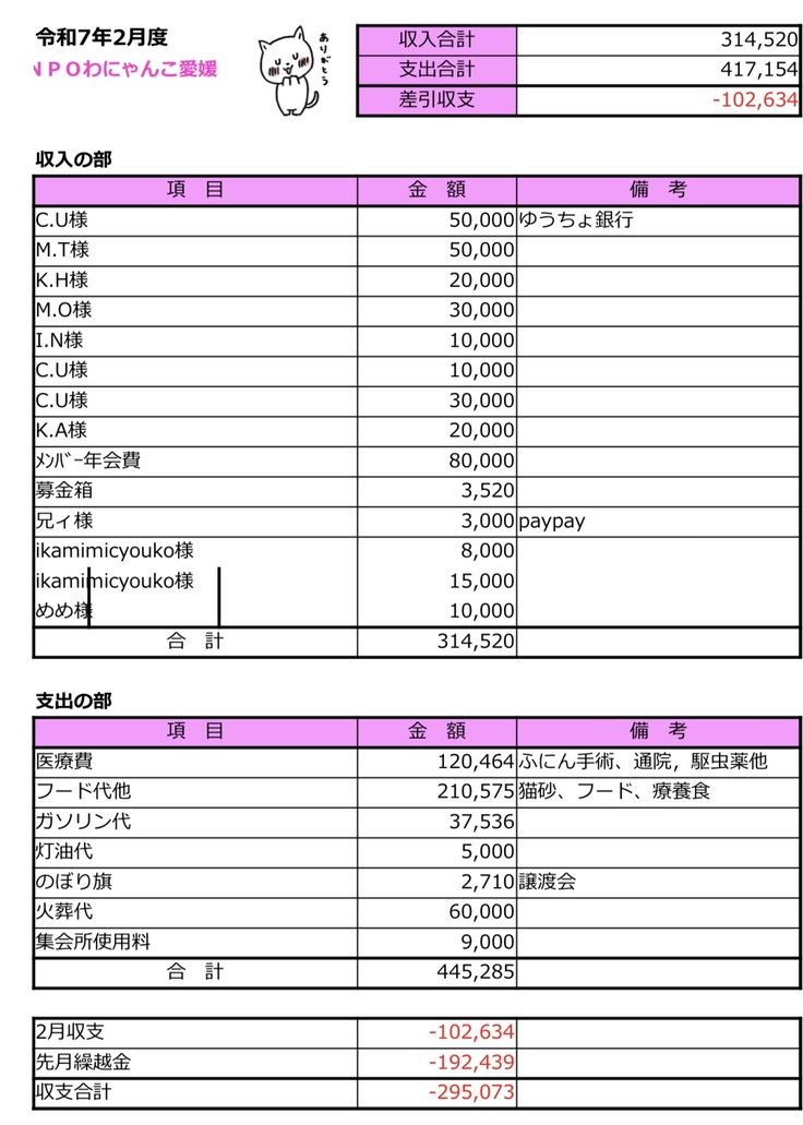 収支報告書R7.2月〜6月まで🙇♀️