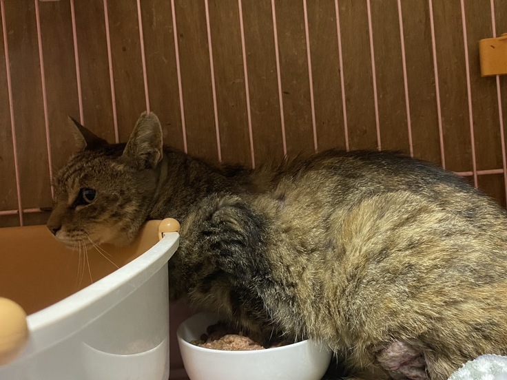翌日、また同じ時間に現れ、無事に捕獲、夜間救急病院に行って頂き、保護場所確保が難しいとのことで、ボラ仲間の信頼出来る方に連絡、預りを快諾してくださり、感謝しかない🙏´-