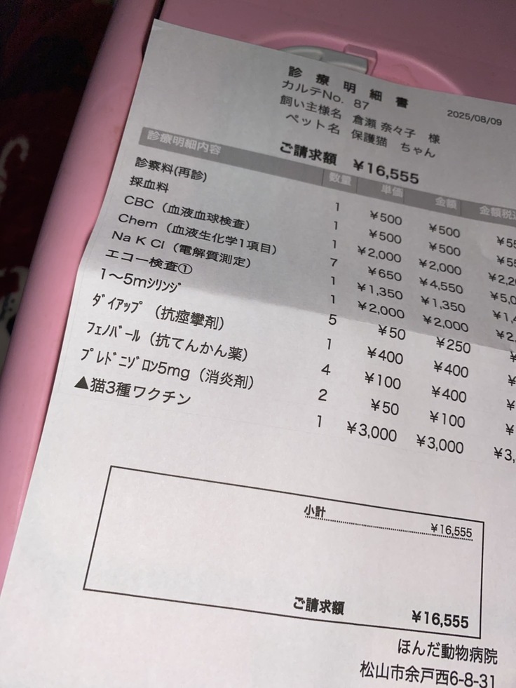 医療費、お預かり代は里親様がお支払いして下さいました🙇♀️