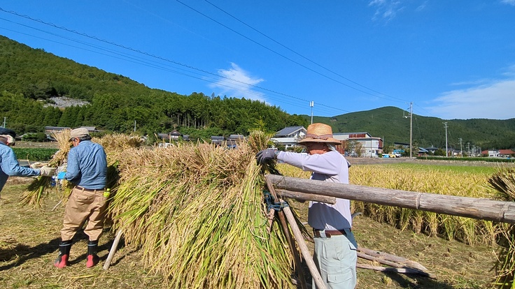 今年は、4月に苗をつくり、5月に植えて、10月稲刈りし、稲木して10月末に脱穀しました。