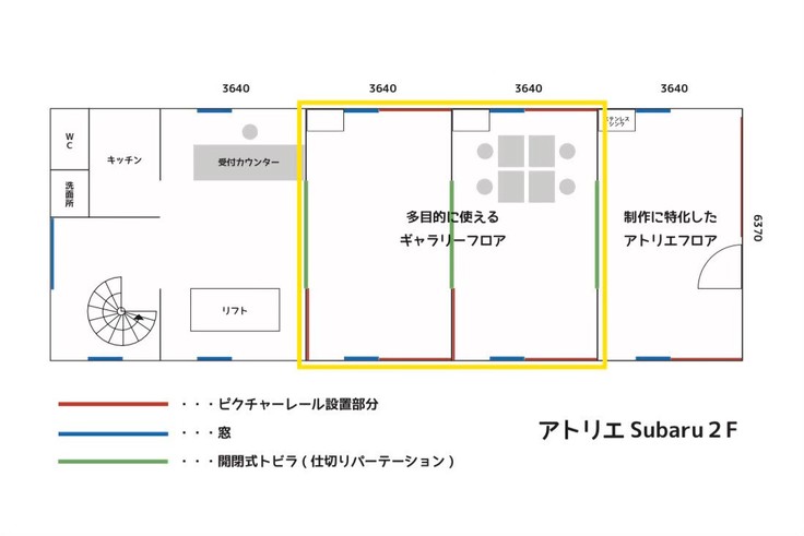 真っ白の壁にピクチャーレールとスポットライトを完備しています。
