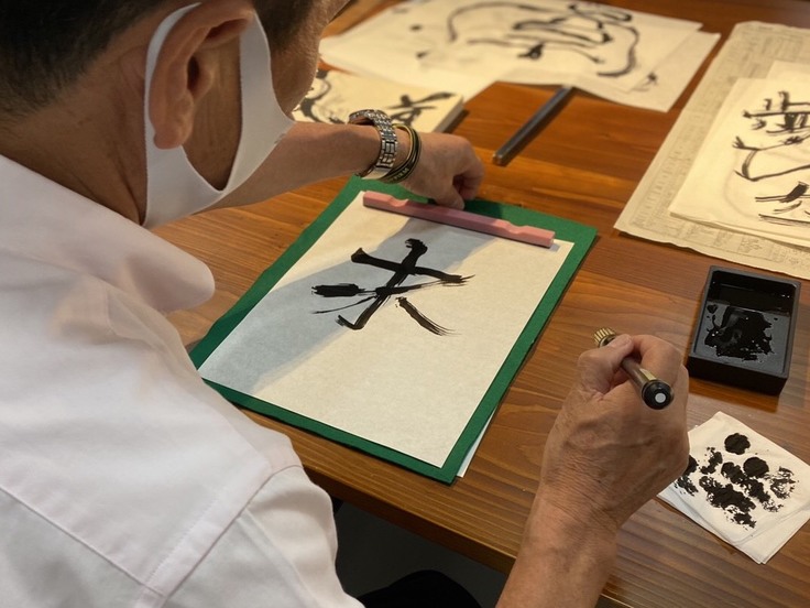 (テレビでは時間の都合でアナウンサーさんのお二人にいきなり字を書いていただきましたが、リハーサルの時に練習をしていただいておりました^^)