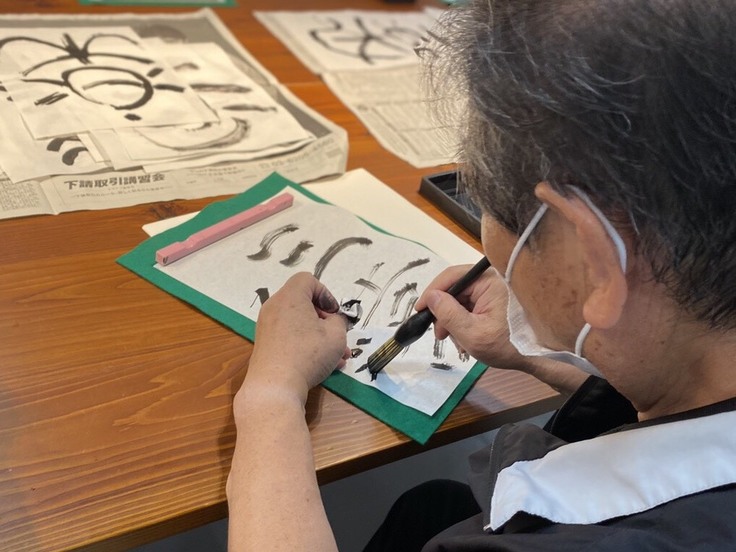普通の毛筆と比べてとても硬いので、慣れるまで少しだけ練習をします。
