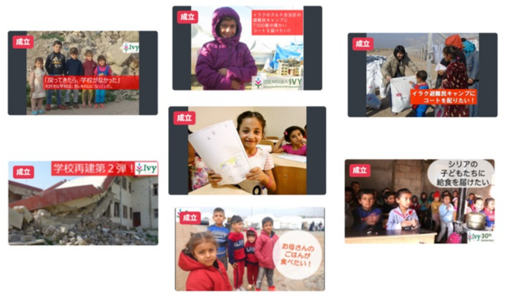 IVYではこれまでに9回(2023年6月現在)、クラウドファンディングに挑戦し、ありがたいことに多くのみなさまのご協力をいただいて、全て目標達成することが出来ました。 おかげさまで私たちは実りある活動を実施し、支援を必要とする人々の期待に応えることが出来ております。