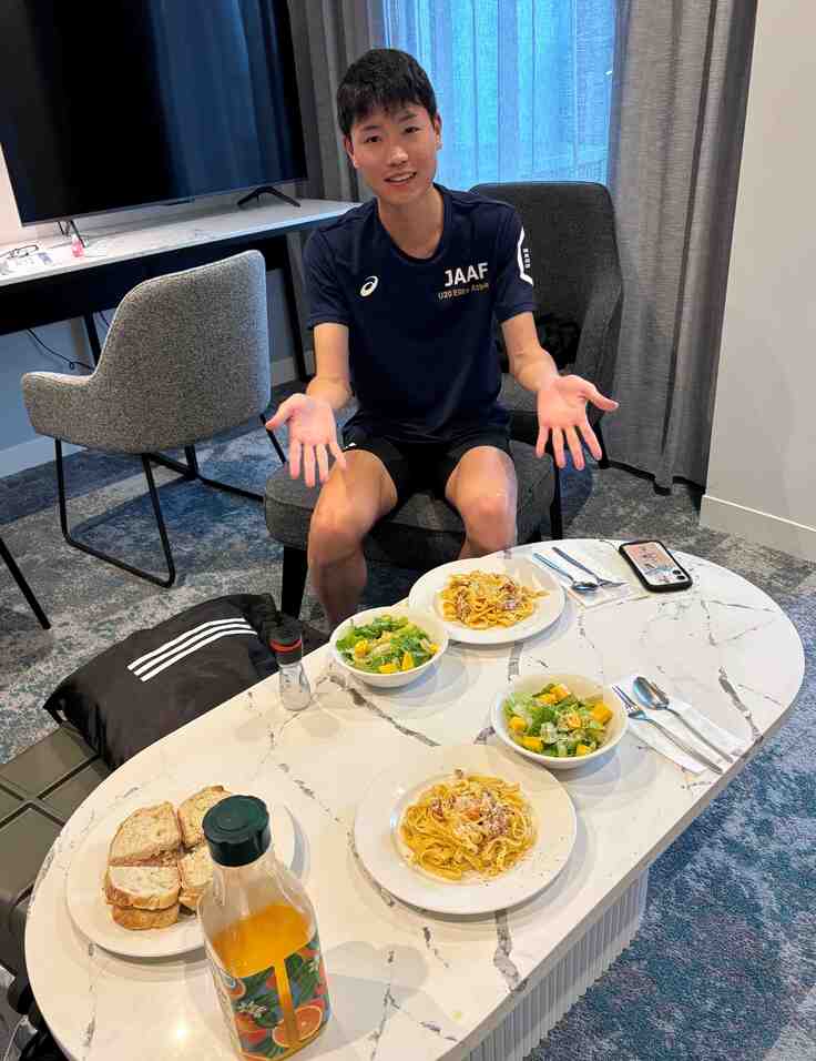 朝は日の出が遅く暗いのもあり、午前・午後の2回に分けて練習を実施。鈴木琉胤は午後に競技場でレースに向けた刺激を行いました。