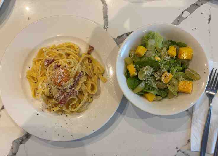 普段からよく料理をするとのことで、カルボナーラはとても美味しくて、またサラダにはマスカットやマンゴーも入っていて、料理が得意ではない私は感動してしまいました。